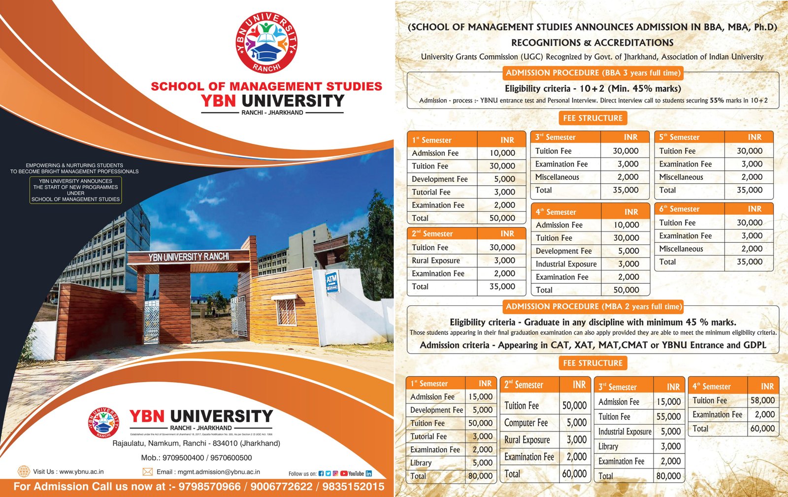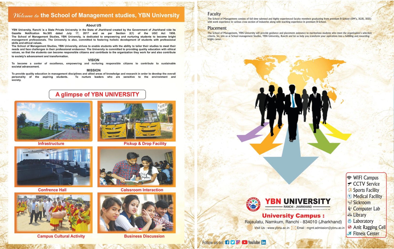 The Govt. of Jharkhand has created a new Private University under the name "The Y.B.N University" situated at Ranchi in the state of Jharkhand vide its Gazette No.505 17th July'2017, as per the provision of the Act.The Govt. of Jharkhand has created a new Private University under the name "The Y.B.N University" situated at Ranchi in the state of Jharkhand vide its Gazette No.505 17th July'2017, as per the provision of the Act. YBN University, Ranchi is the one of the best private university in Jharkhand in terms of infrastructure and placement, both.